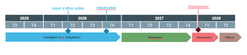 Le calendrier suivant a été défini pour la mise en œuvre du projet :